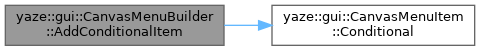 | CanvasMenuBuilder & | AddConditionalItem (const std::string &label, std::function< void()> callback, std::function< bool()> condition) |