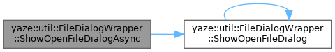 | static void | ShowOpenFileDialogAsync (const FileDialogOptions &options, std::function< void(const std::string &)> callback) |