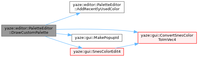 References AddRecentlyUsedColor(), yaze::gui::ConvertSnesColorToImVec4(), current_color_, custom_palette_, edit_palette_index_, yaze::editor::kColorPopupFlags, yaze::gui::EditorNames::kPalette, yaze::gui::MakePopupId(), and yaze::gui::SnesColorEdit4().