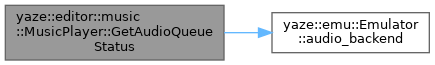 References yaze::emu::Emulator::audio_backend(), yaze::editor::music::AudioQueueStatus::backend_name, emulator_, yaze::editor::music::AudioQueueStatus::has_underrun, yaze::editor::music::AudioQueueStatus::is_playing, yaze::editor::music::AudioQueueStatus::queued_bytes, yaze::editor::music::AudioQueueStatus::queued_frames, and yaze::editor::music::AudioQueueStatus::sample_rate.