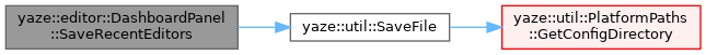 References recent_editors_, and yaze::util::SaveFile().