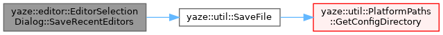 References recent_editors_, and yaze::util::SaveFile().