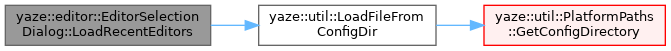 References kMaxRecentEditors, yaze::editor::kSettings, yaze::util::LoadFileFromConfigDir(), and recent_editors_.