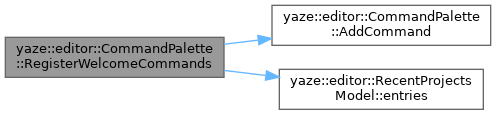 | void yaze::editor::CommandPalette::RegisterWelcomeCommands | ( | const RecentProjectsModel * | model, |