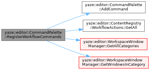 References AddCommand(), yaze::editor::ContentRegistry::WorkflowActions::GetAll(), yaze::editor::WorkspaceWindowManager::GetAllCategories(), yaze::editor::WorkspaceWindowManager::GetWindowsInCategory(), and yaze::editor::CommandCategory::kWorkflow.