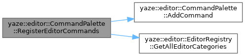 References AddCommand(), yaze::editor::EditorRegistry::GetAllEditorCategories(), and yaze::editor::CommandCategory::kEditor.
