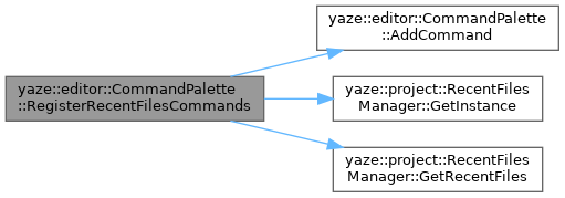 References AddCommand(), yaze::project::RecentFilesManager::GetInstance(), yaze::project::RecentFilesManager::GetRecentFiles(), and yaze::editor::CommandCategory::kFile.